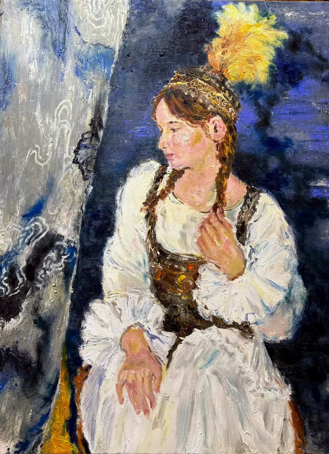 通过努力探索,作品也时常被邀请参加展览,每次展出反映很大,她笔下的人物、风景、静物等等,题材丰富,所表的光与影,构图精准色彩斑斓,一位退休后才拿几年的油画笔的她,所展现了一个土生土长新疆女性对故土深情的视觉叙述。