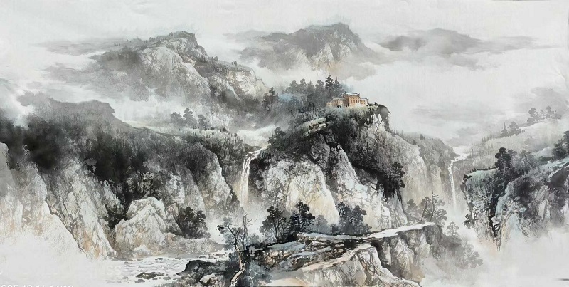 在名种颜色的使用中,石青要透而不浮,石绿需沉而不滞,笔尖蘸饱了水,轻轻在瓷碟边缘刮去三分,留那七分氤氲的翠意。落纸的瞬间,墨的骨骼已在那里等着了,先前用淡墨皴出的山峦纹理,此刻正渴望这层青绿的肌肤。